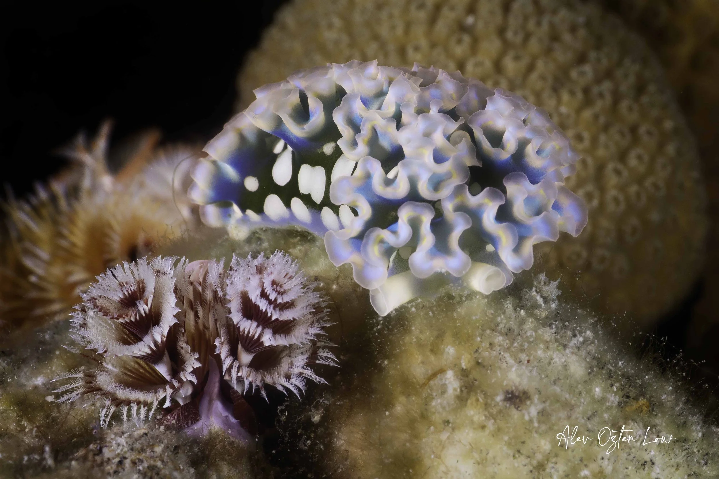 Sea Lettuce Slug (Elysia crispata) and Christmas Tree Worm