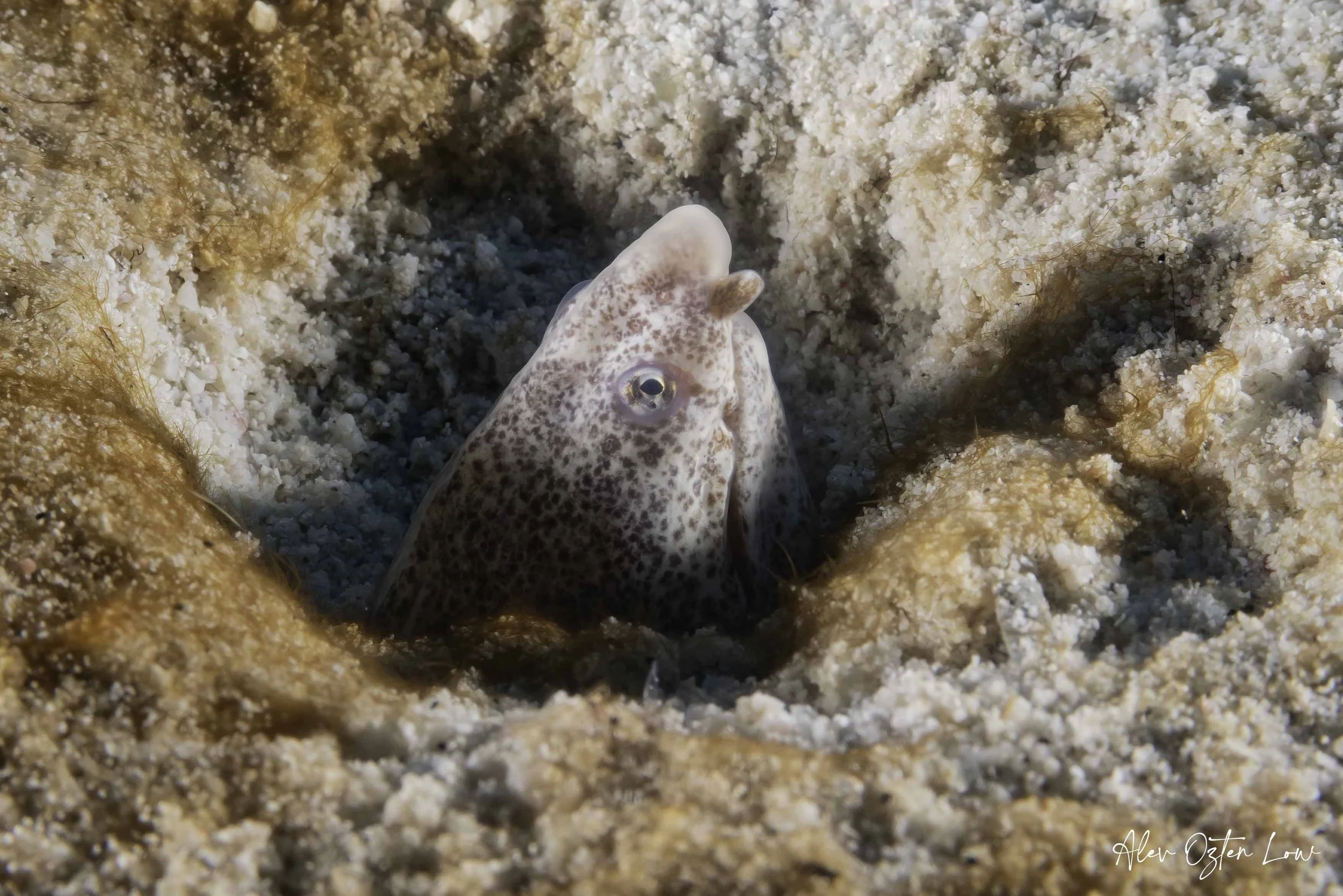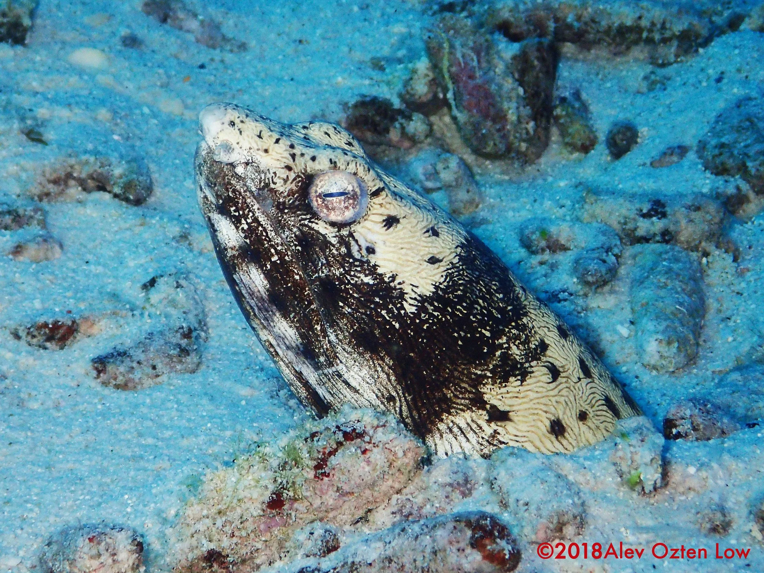 Spotted Spoon-nose Eel (Echiophis intertinctus) dying