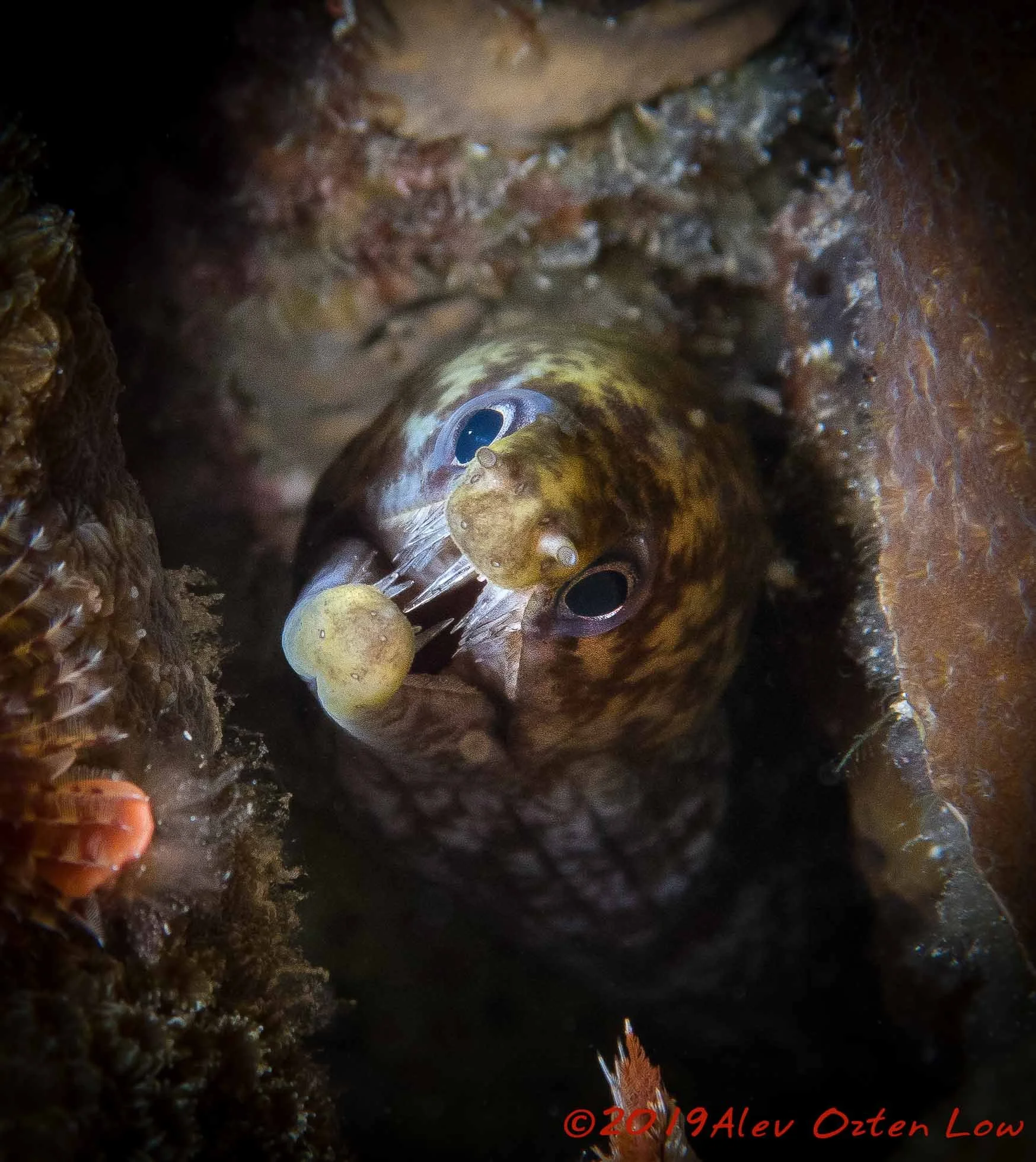 Purplemouth Moray (Gymnothorax vicinus) injured or diseased