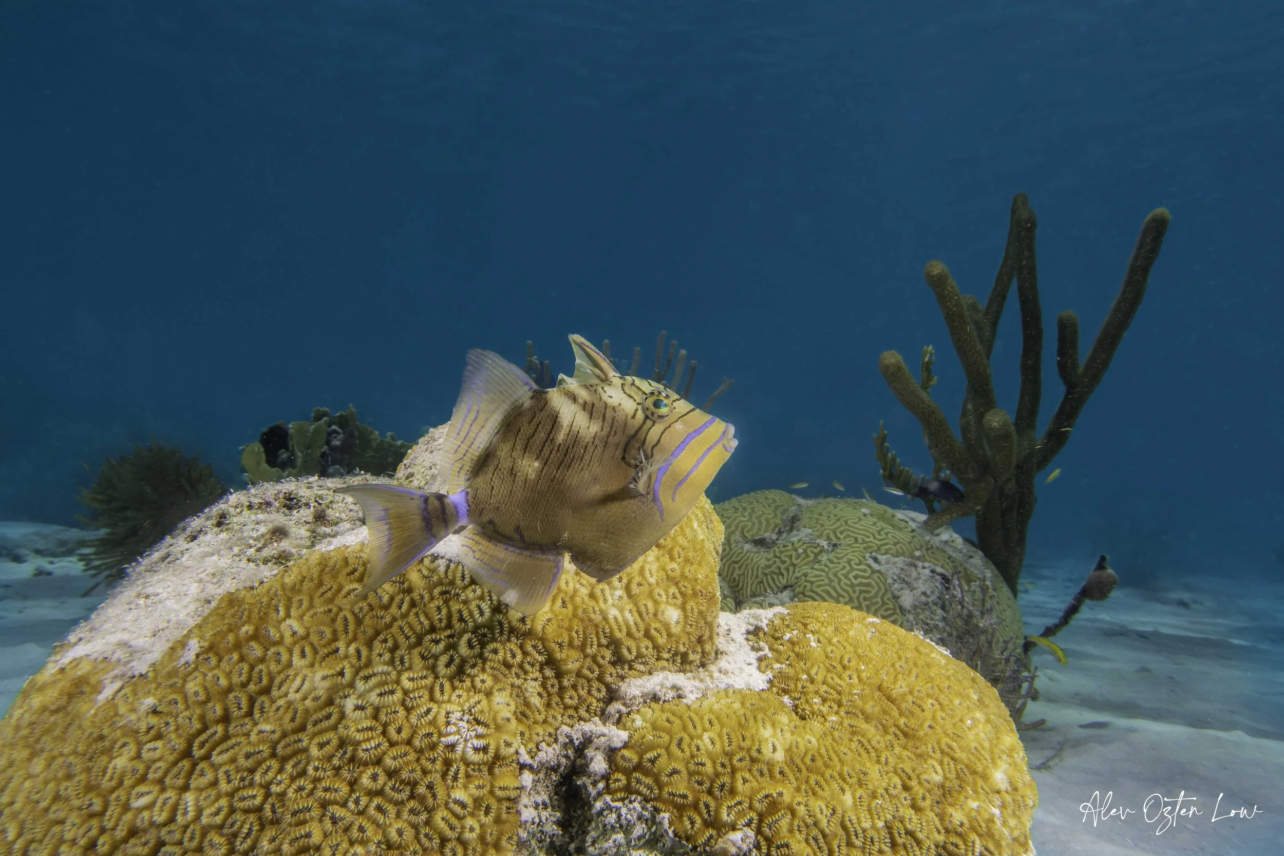 Queen Triggerfish (Balistes vetula) - Juvenile - Hiding under a wine bottle!